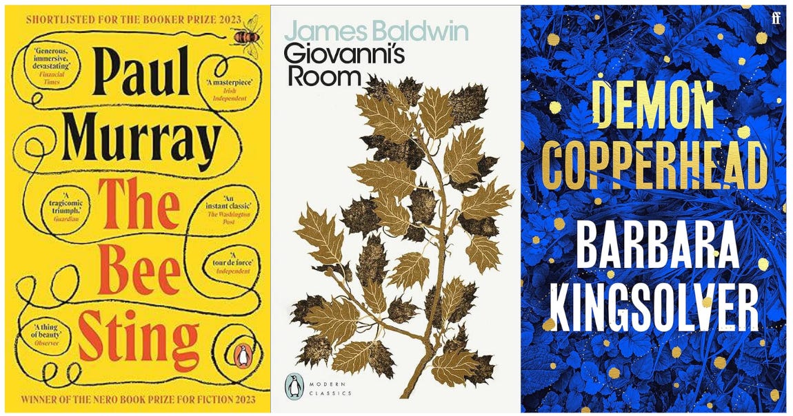 The Bee Sting by Paul Murray - The Bee Stingfollows an Irish family experiencing financial and interpersonal crises following the 2008 recession. The book switches perspectives between all four members of the family: a teenage daughter, a preteen son, and a middle-aged mother and father. Murray does such a great job inciting empathy for each of these deeply flawed characters, even developing distinct writing styles for each of their inner monologues. The book is deeply emotional and hilarious and builds to a satisfying conclusion, in which all four storylines converge unexpectedly. I also loved watching Dua Lipa’s interview with the author after reading it!