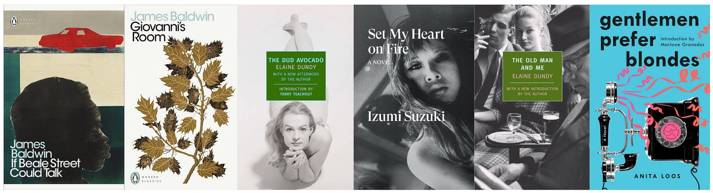 This isn’t to say I don’t love an intense novel which makes me cry and think and brood. The first book to make me cry in 2024 was Set My Heart On Fire by Izumi Suzuki, which I picked up in a bookstore in NYC and read it in the bath at The Public, a nicely melancholic but actually quite nice setting in which to devour this weird, dirty, fizzing, erotic, dizzying novel about a young woman in the underground music scene in 1970s Tokyo. I also cried on the tube reading two James Baldwin novels this year: Giovanni’s Room and If Beale Street Could Talk. Because you know what else is hot? Being moved to tears by great art!