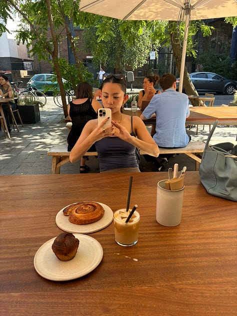 This was one of the most wholesome things I did this month, would highly recommend if anyone needs a serotonin boost. As much as I love a casual hang, and especially in the summer, I’m a big advocate for seeing where the night takes you (‘tis the season for serendipity!!), there’s something to be said about planning a full day out (I am aware that’s basically a date). My friend Zee had the day off, and whilst we usually meet to work from a café, she had mentioned the previous weekend that she never goes East, so I suggested a field trip. After sending off our emails and job applications for the day, we followed the itinerary I had sent her the night before, starting off with coffee and pastries at Pophams before heading over to London Fields. Dinner was Dough Hands Pizza at the Spurstowe Arms (I had eyed the pizza the week before but didn’t get a chance to try it, so this was also an elaborate scheme to go back for the food). Because we still had loads to talk about, we headed back to Alice House in West Hampstead (immaculate fries, heartburn be damned!) for a nightcap before going our separate ways.