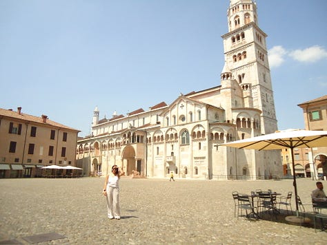 In Modena, I reenacted a scene from David and Goliath as I attempted to tackle a pizza the size of a small child, and in Parma, we escaped the heat by visiting the National Gallery in the gargantuan Pilotta Palace.