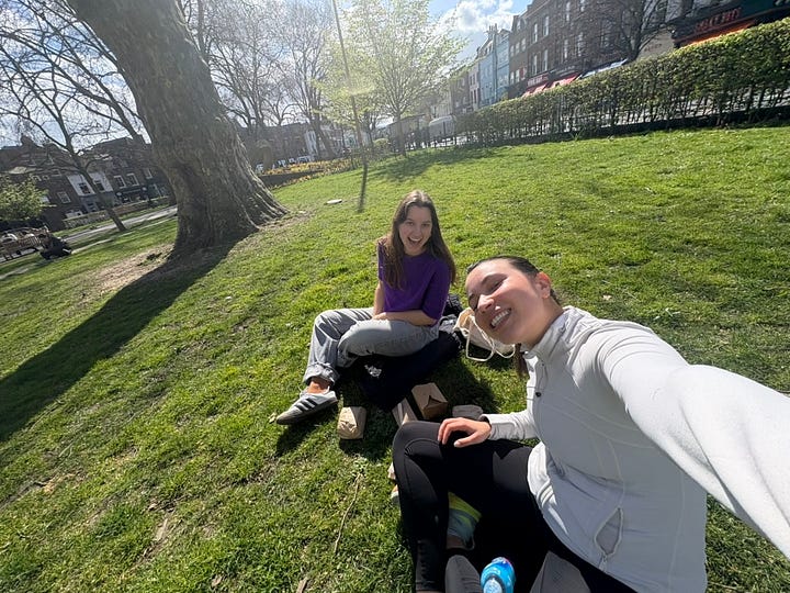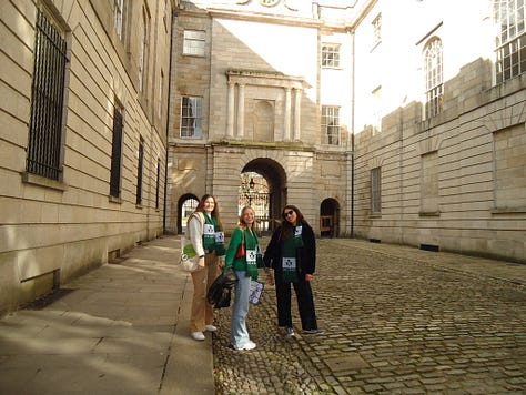 There’s no better remedy to an existential crisis than spending quality time with the people you love, and a long weekend in Dublin with my best friends from school was just what the doctor ordered. This weekend served both girls gone wild and girls gone mild, with a combination, of Pubs, Clubs, several (failed) attempts to split the G, as well as wholesome hungover breakfasts, hikes and city-council-organised scavenger hunts around the city. We fully committed to the bit with matching green scarves, face paint and headbands. Though spending a St.Patrick’s Day in Dublin had been on my bucket list for a while, I know that with these girls I can have fun just about anywhere, and seeing them feels like coming home. I think sometimes we stay friends with people we’ve known for a long time out of habit, or stay stuck in the people you were when you first met, but this weekend made me realise that there’s something extra special about friends who have seen (and loved and supported) so many versions of you, who don’t need context or filtering, and with whom you can have a friendship that matures and deepens over time. Even then, I know without a doubt that even if we met today and had none of the history, I would still be dying to befriend these girls, and feel very lucky to bear witness to every version of them.