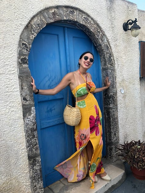 What I’m really trying to get across is I’m both creative and analytical, I’m very organised and collaborative and like to be challenged. Please hire me! My Hinge profile hasn’t been updated all that recently, but hey, if it ain’t broke, don’t fix it. The idea is to give a general idea of my personality, emanate hotness, and curate the user experience once we start chatting. We start with a picture of a very tanned Julia in Greece. It’s a great picture that never got to see the light of my Instagram feed, and is therefore being put to use here. It’s a little sexy, there’s a taste of sideboob, it gets people scrolling. We then get a picture of me at a house party with a friend, sipping through a straw from a beer wedged into my pocket. It says I’m innovative and know how to have a good time! My most chat-provoking prompt? I’m weirdly attracted to… Fictional characters in white wigs. You’d be surprised at how many people have pulled out their founding father fits before I can even give more context (childhood crush on Legolas from lotr followed by an adult crush on Geralt in The Witcher, if you’re wondering).